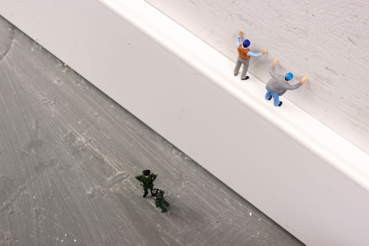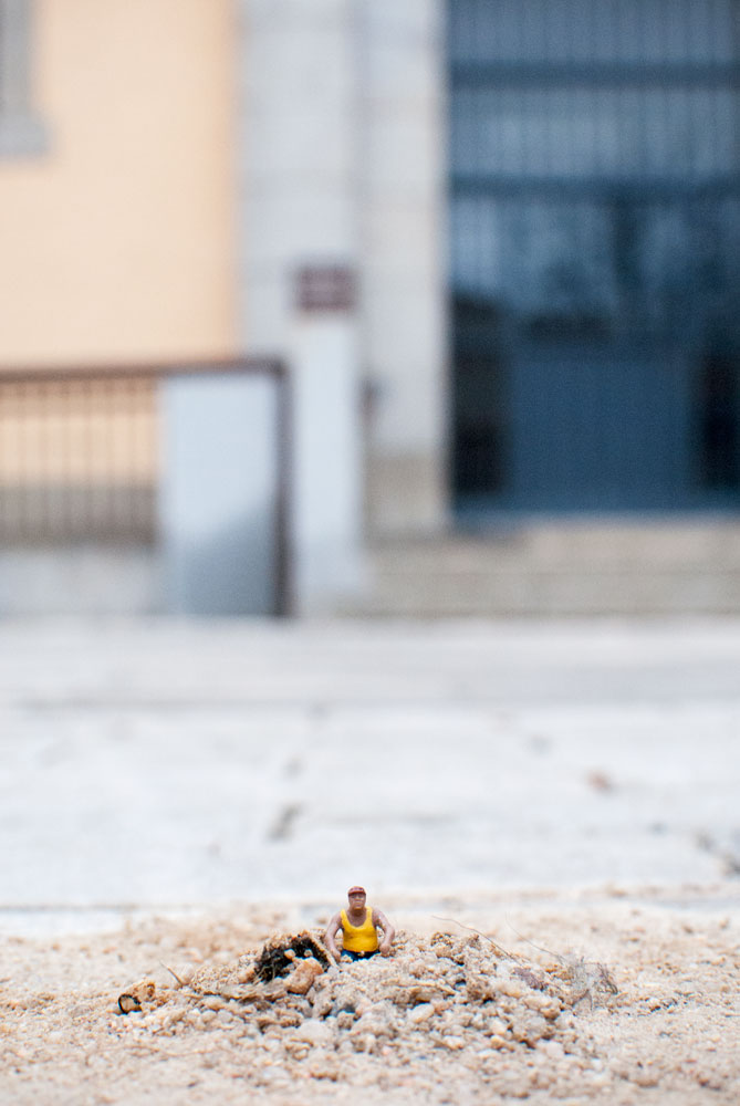 El espectador encontraba, en el interior de una celda, una serie de fotografías con escenas de fugas inspiradas en el cine clásico. Solo después de un buen rato descubría que las escenas recreadas, aparentemente grandes en las imágenes, eran mínimas y se encontraban camufladas en el mismo espacio, pequeñas intervenciones con personajes de escala 1/87 que jugaban con los elementos que definen el espacio carcelario.